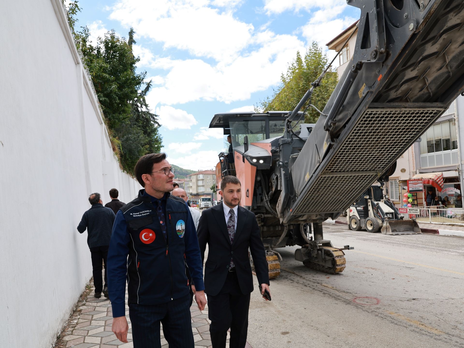 burada devam eden asfaltlama çalışmalarını yerinde inceledi. Çalışmaların kısa
