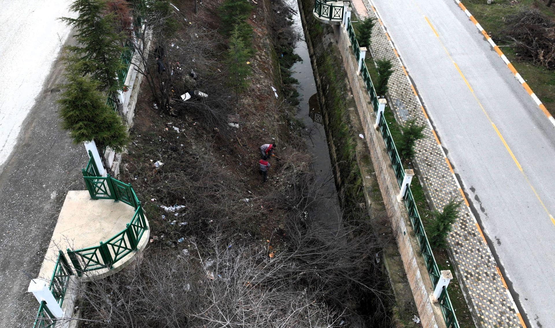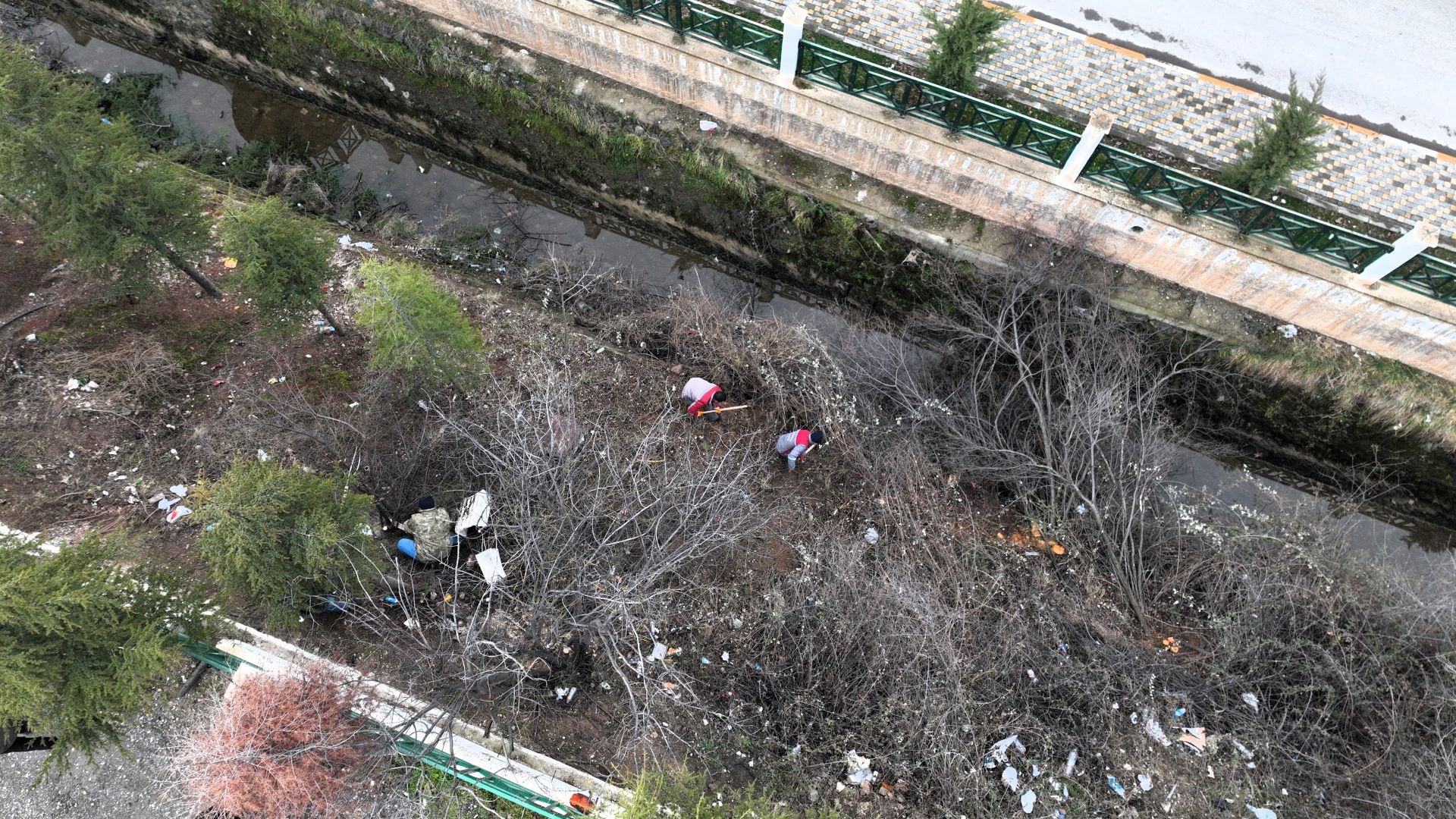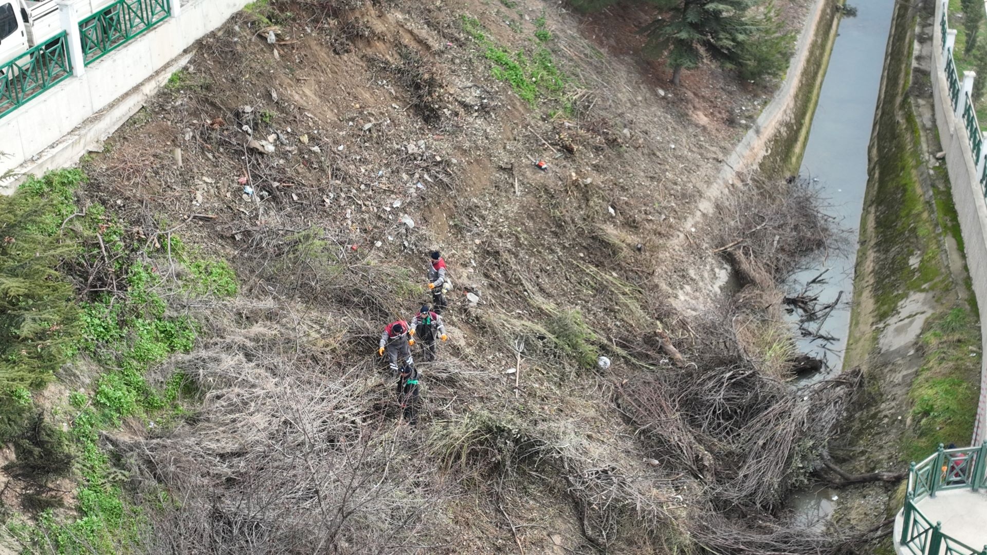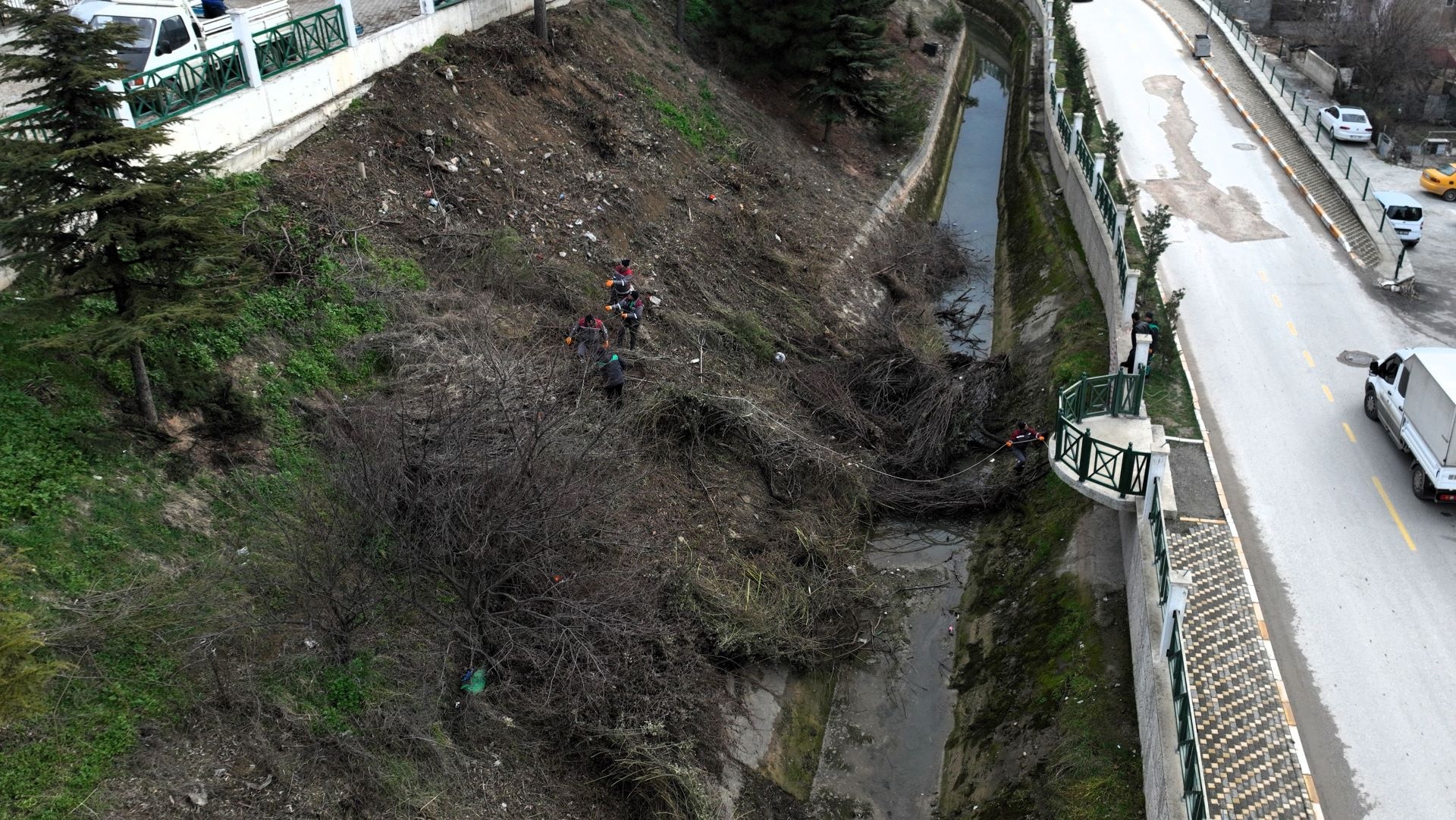 budanıyor, yabani çalılar temizleniyor ve kanal içerisinde biriken çöpler