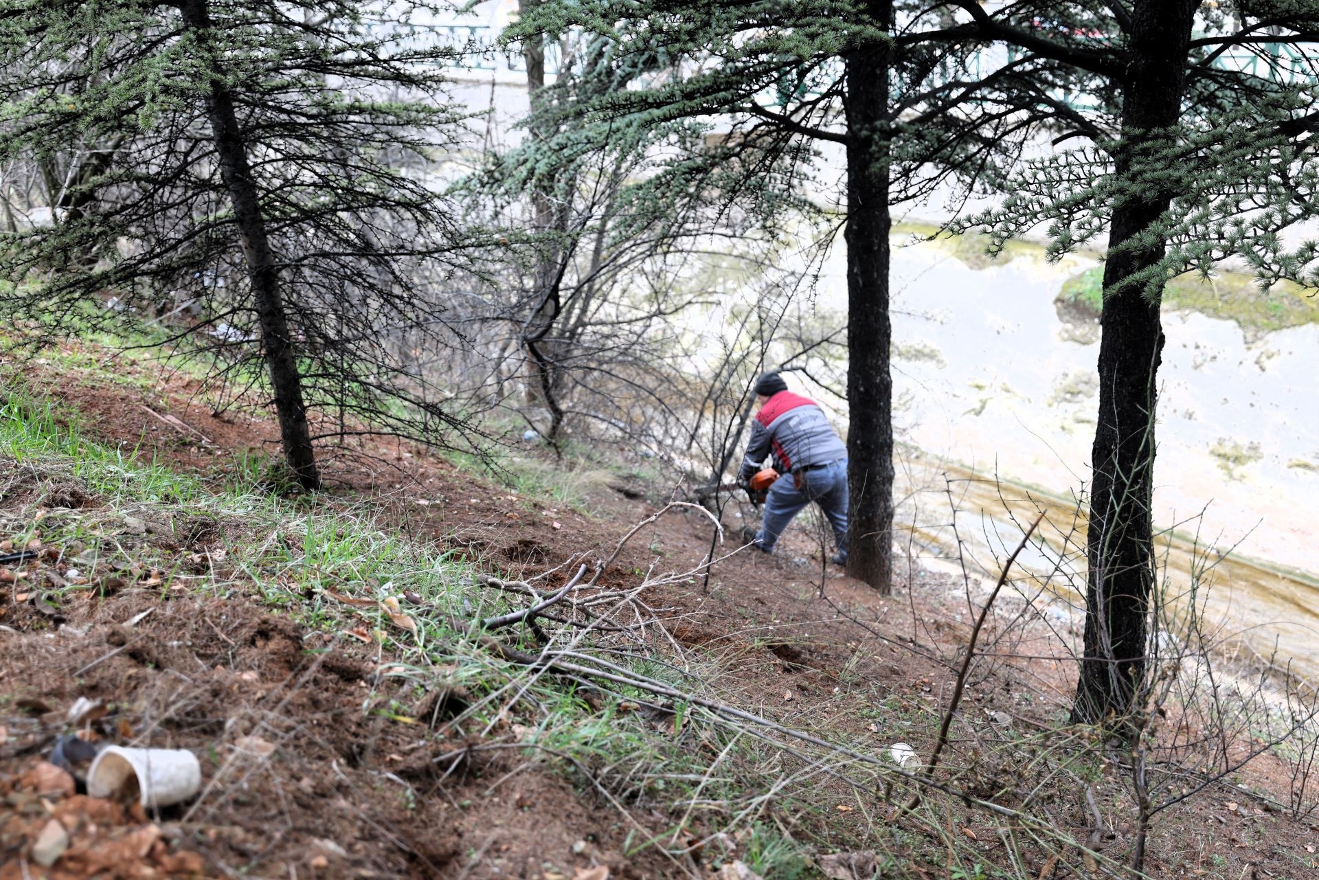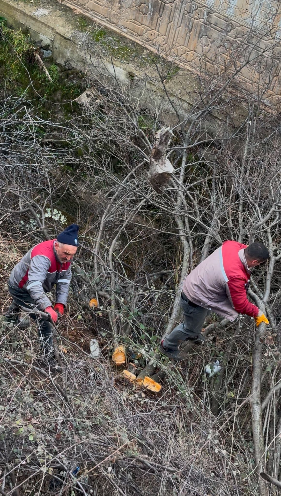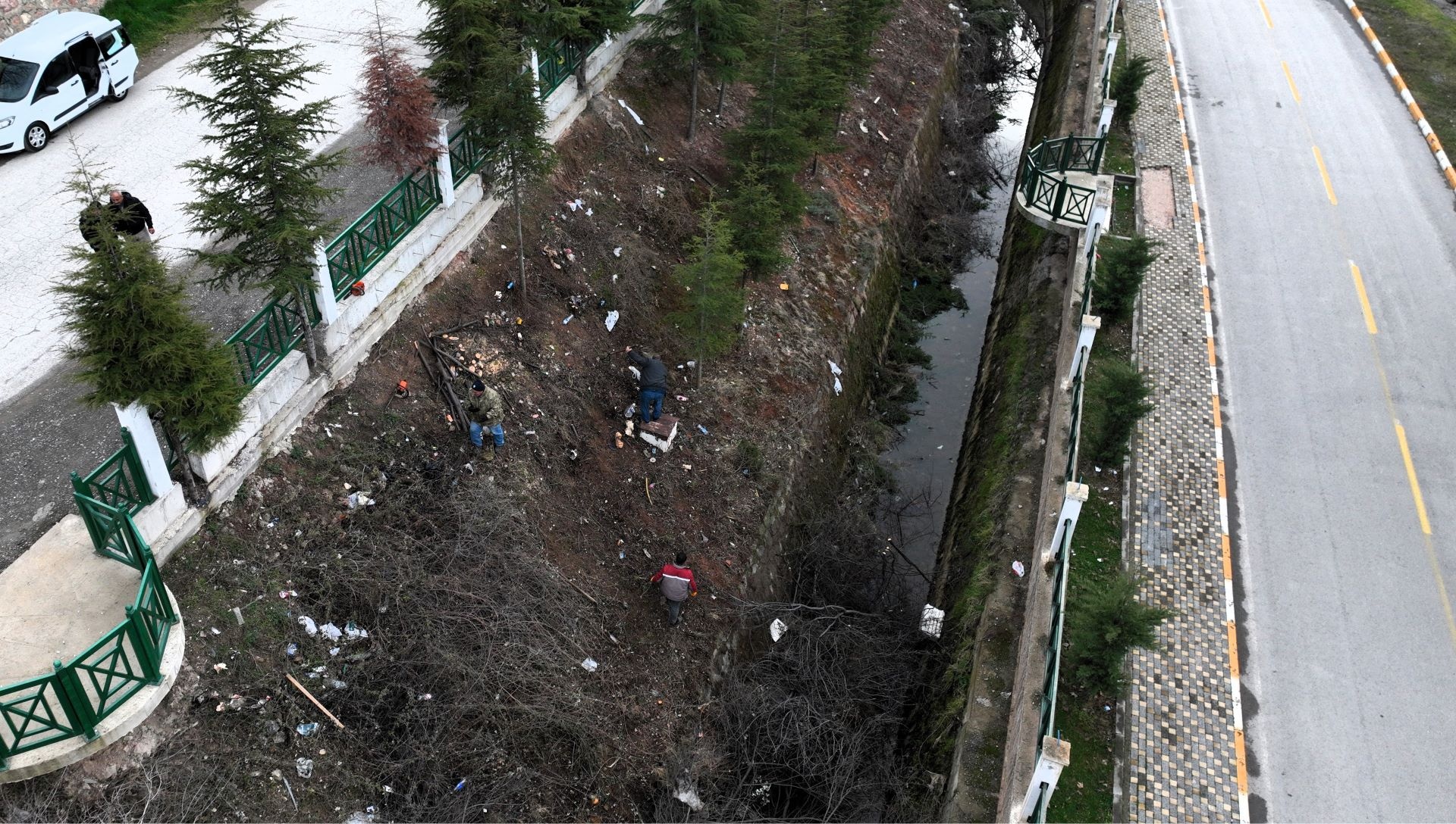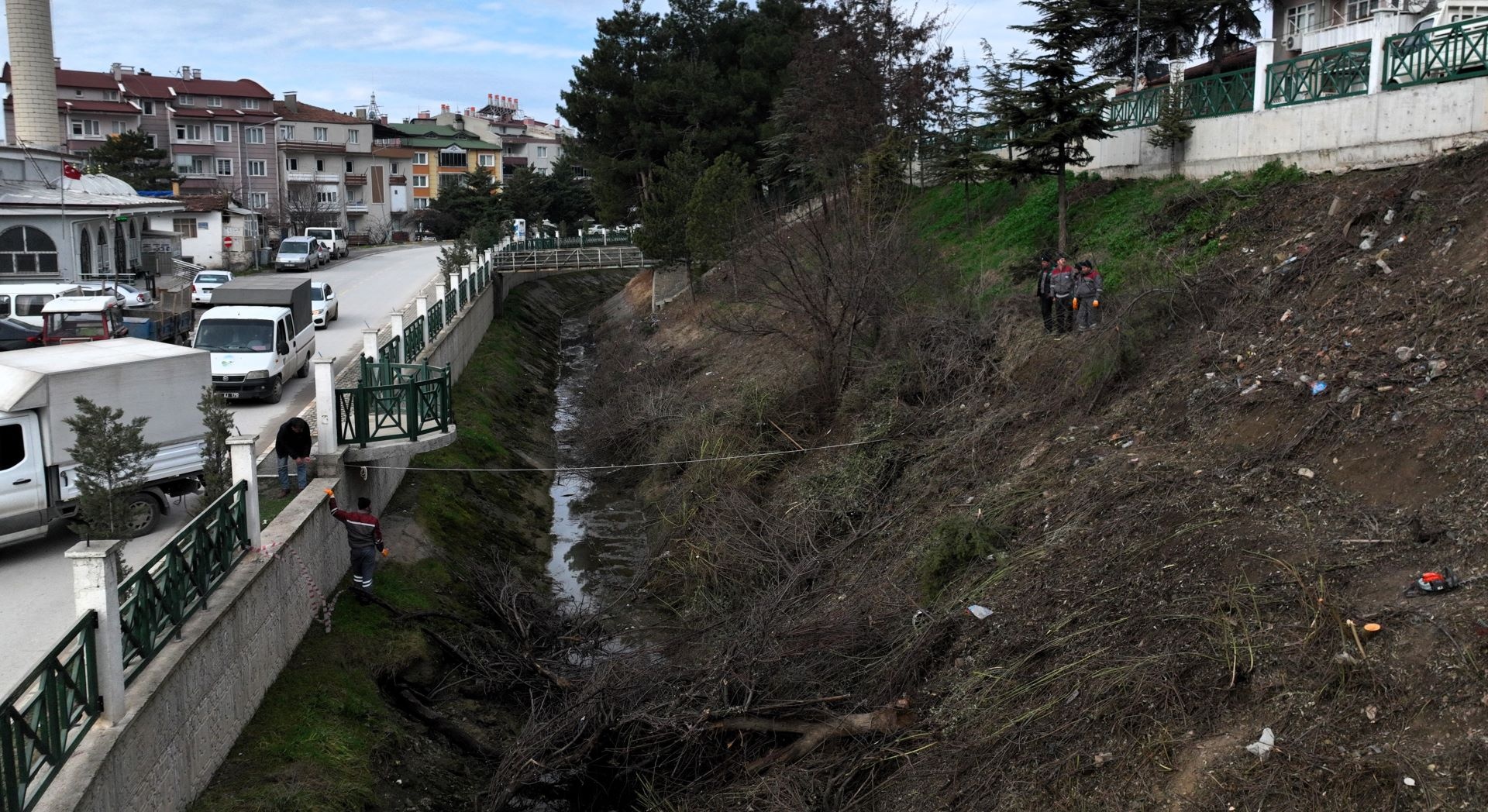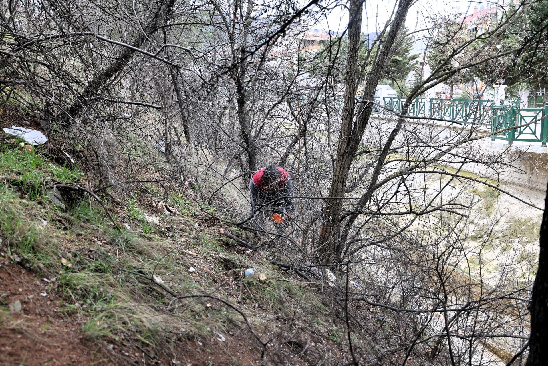 budanıyor, yabani çalılar temizleniyor ve kanal içerisinde biriken çöpler