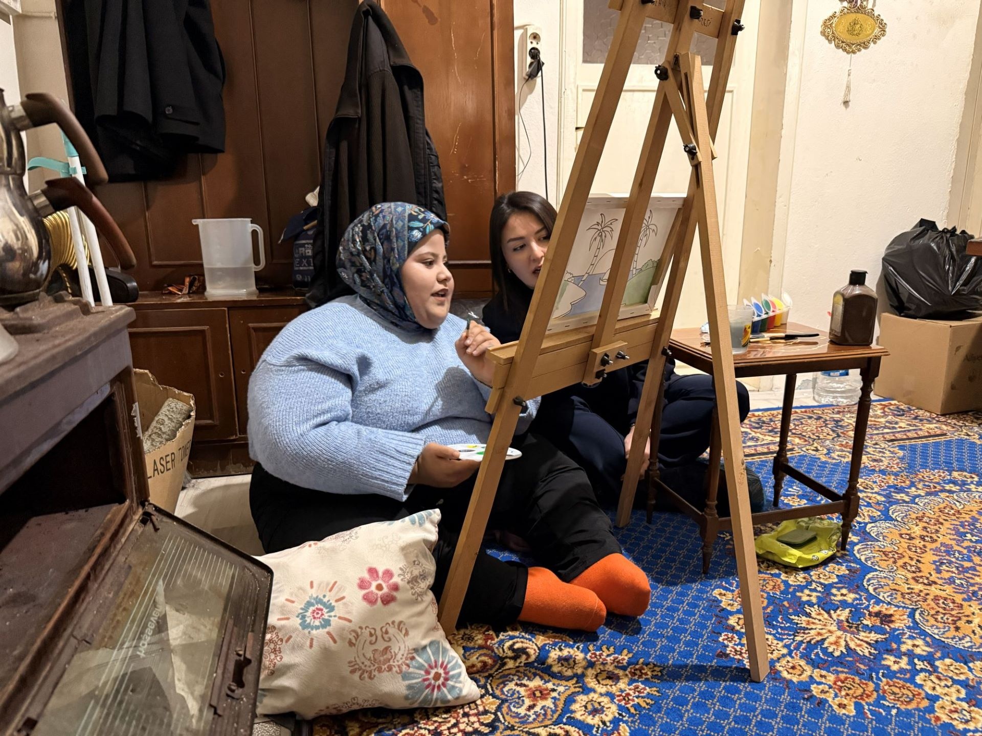 bakım ve gıda yardımlarının yanı sıra, resim hocası eşliğinde gerçekleştirilen