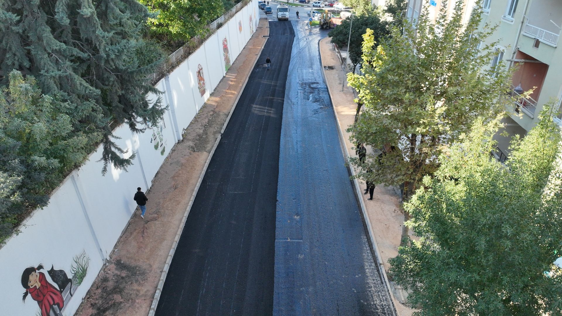 cadde üzerindeki duvar yüzeyleri sanatsal resimlerle süslenerek bölgeye estetik